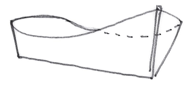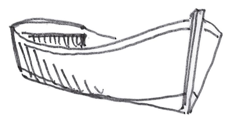 Tracez deux traits de chaque côté pour former les flancs, puis reliez-les à la pointe avant (la proue).