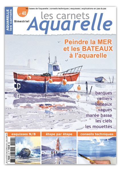 Ce tutoriel est inspiré par le contenu du magazine Les carnets Aquarelle n°40 : Peindre la mer et les bateaux à l’aquarelle